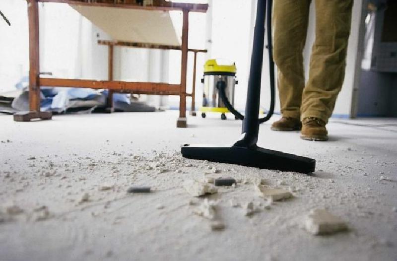 Но не всегда удается предотвратить загрязнение пола. Как бы вы ни старались это сделать, по окончании ремонта на нем все равно останется мусор и строительная пыль, которую нужно будет убрать. Но перед тем, как приступать к основательной генеральной уборке, нужно подготовить пол к ней. И начинать все следует с тщательного подметания, в процессе которого будет убран крупный мусор. Далее, если на полу, стенах или поверхности мебели видны пятна краски, штукатурки или цемента, их нужно удалить с помощью небольшого шпателя, предварительно намочив водичкой.