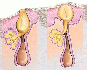 Кожа человека покрыта многочисленными сальными железами, которые вырабатывают жирный секрет, предназначенный для увлажнения и защиты. Если такого жира становится чересчур много, или он слишком густой, происходит закупорка сальных желез, в результате чего они воспаляются. Скопившееся под кожей сало образует белый твёрдый шарик, который называется закрытым комедоном. Люди часто пытаются самостоятельно удалить такой внутренний прыщ, однако после этого на его месте может образоваться не только тёмное пятно, но и остаться рубец, избавиться от которого будет уже проблематично.