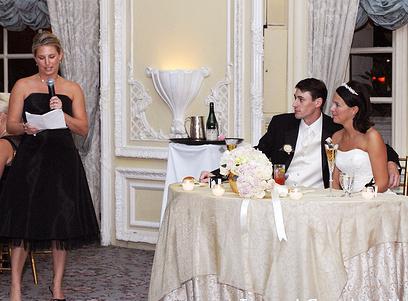 - При произнесении речи необходимо стоять. Хорошо, если есть микрофон и сцена, ведь в свадебной суете трудно привлечь и удержать внимание на себе. Любые, даже самые воспитанные, гости создают множество шума, из-за которого вас может быть совсем не слышно. Микрофон на свадьбе обязателен!