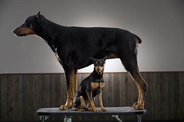 Карликовые доберманы - животные компактные, их рост не превышает 30 см. Они бывают трех окрасов: черно-подпалого, рыжего и коричнево-подпалого. Только в Америке встречается последний вид. Собака весит не более 6 кг.