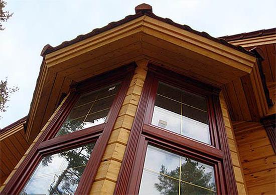 Чтобы сохранить первозданный вид частного дома, нужно искать новые решения, сочетающие использование натуральной древесины наличников и пластика оконных рам.