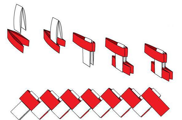 - Сделайте несколько таких же деталей и соедините их зигзагообразной формой, вкладывая одну в другую.