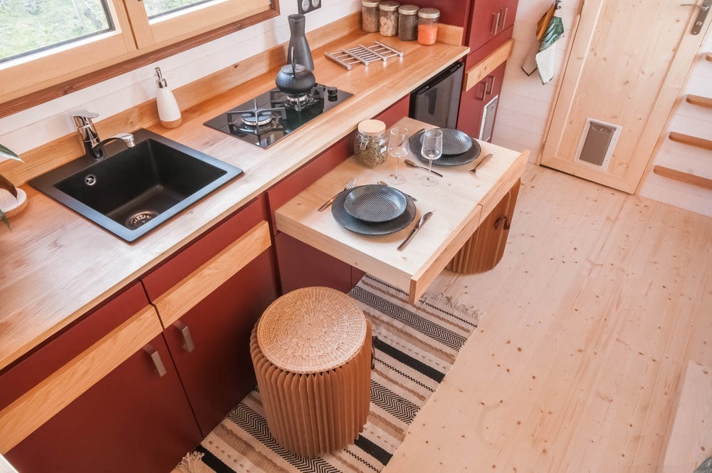 Ограниченное пространство является главной проблемой на пути к обустройству не просто комфортного, но и функционального жилья. Однако специалисты французской фирмы Baluchon продемонстрировали оригинальную разработку дома длиной в 6 м, в котором уютно проживает пара вместе с домашними животными. Плюс к этому в небольшим домике предусмотрена кладовка и отдельная зона для гостей.