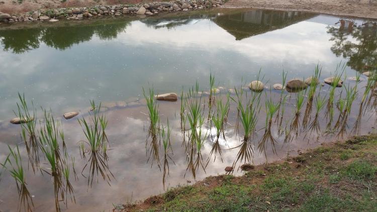 Затем был оборудован спуск в зону купания, а с каждой стороны – зоны отдыха. Территорию вокруг пруда было решено дополнить растительностью. Водные растения необходимы для очистки воды естественным путем.