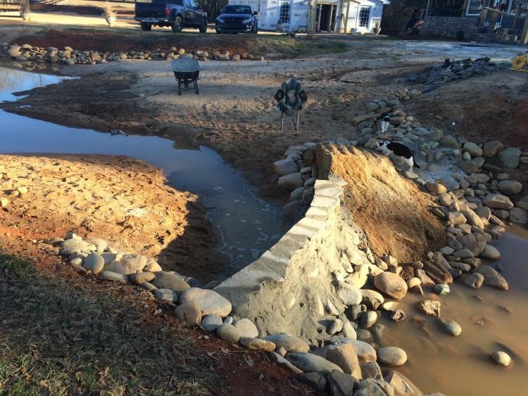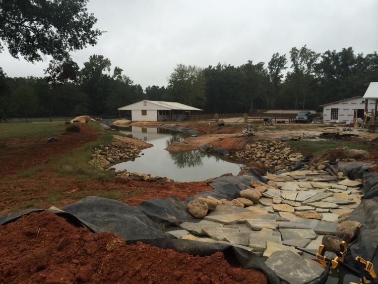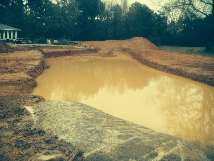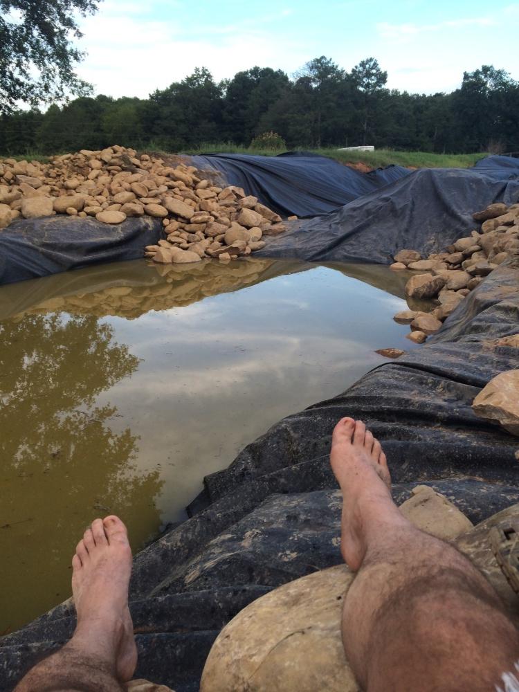 В самом начале работ реализацию проекта остановила мать-природа. Совершенно неожиданно для землевладельца ливневый дождь заполнил водой котлован будущего пруда. Хотя ливень был не к стати, работы не были закончены, но это помогло мужчине понять, что его пруд будет наполняться водой абсолютно естественным способом.