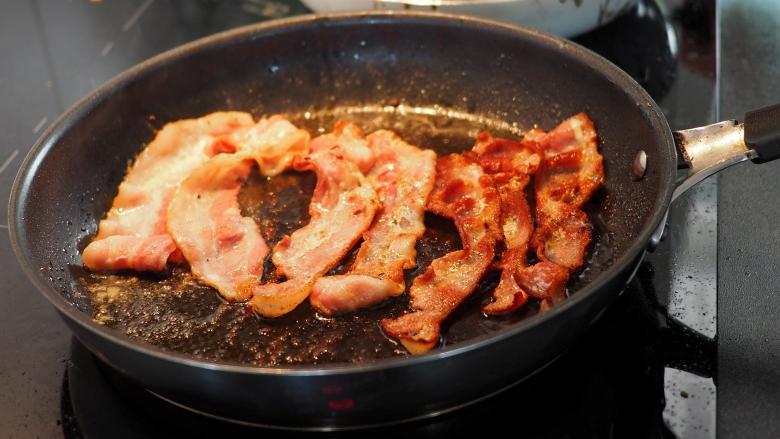 На горячей сковороде бекон просто пережарится - раньше чем будет готов. А вот холодная посуда вытопит лишний жир и сделает бекон хрустящим и невероятно вкусным.