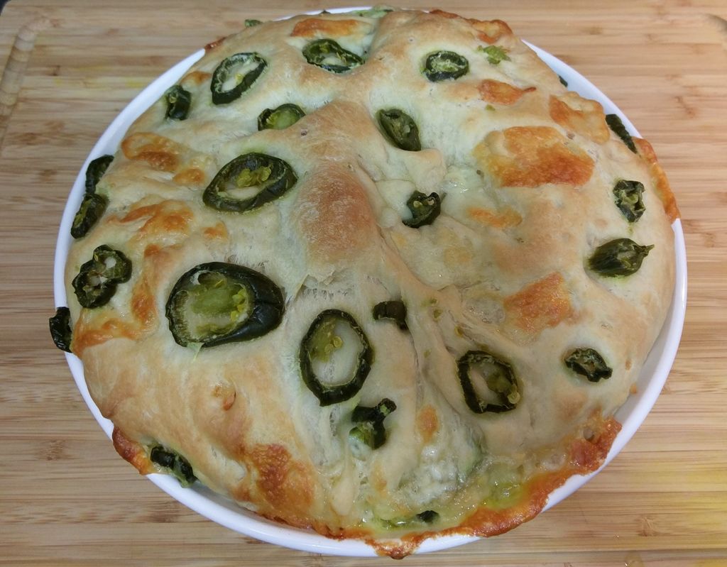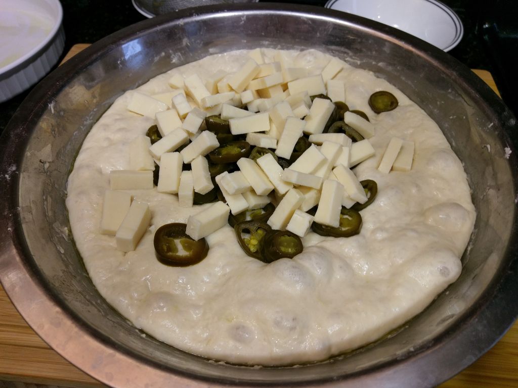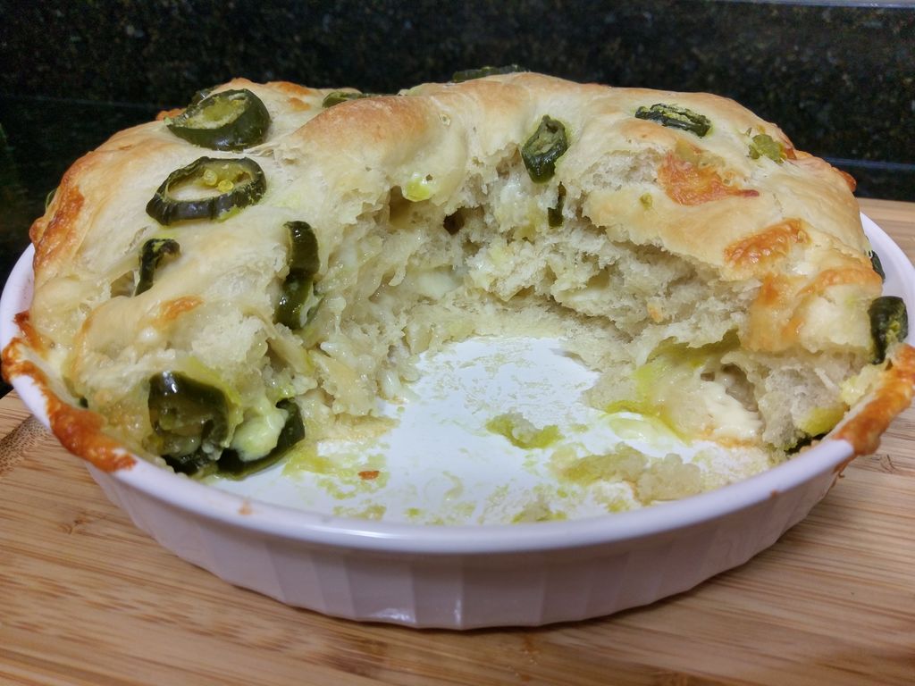 Последнее время я часто готовлю хлеб с разными начинками: больше всего мне нравится сочетание нежного сыра и острого перца халапеньо