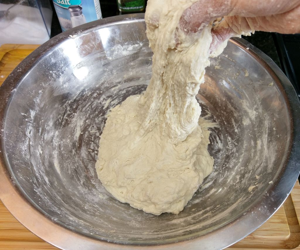После того как тесто поднялось, оно должно быть увеличено более чем в два раза и иметь достаточно "пузырчатую" текстуру.