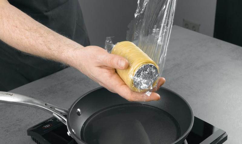 Для приготовления блюда также необходимы втулка от туалетной бумаги, пленка для пищевых продуктов и фольга.
