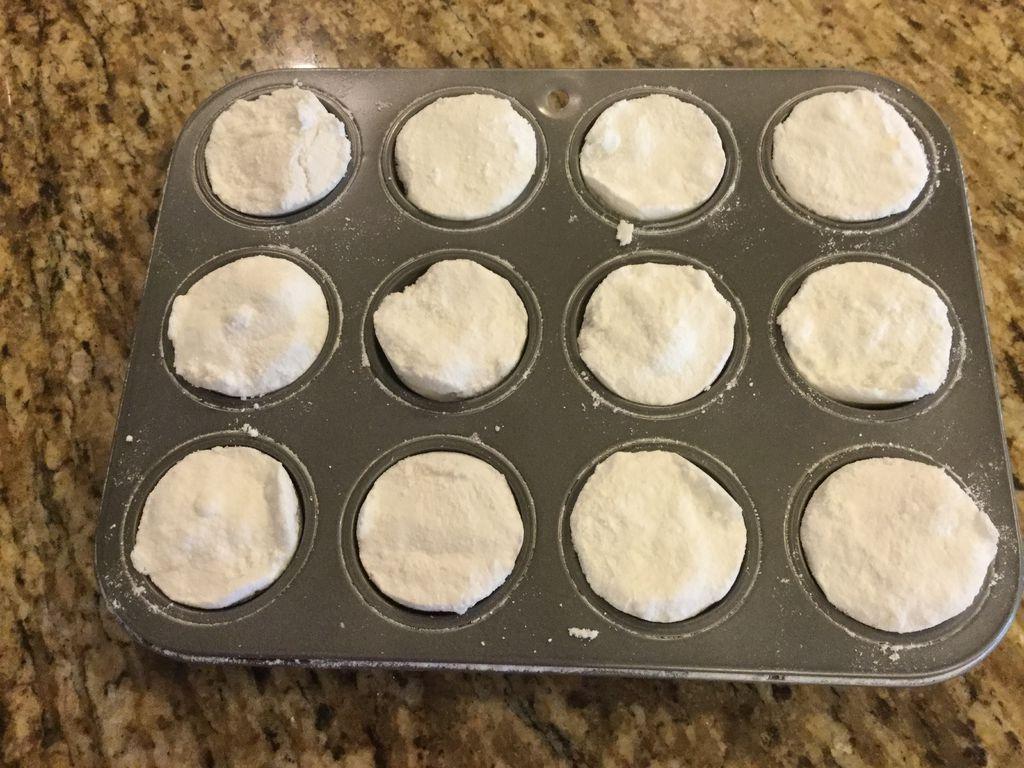 Количество перечисленных ингредиентов, приведенное в этом рецепте, позволит вам приготовить приблизительно 24 таблетки, при условии, что вы будете делать их в формах для выпекания маффинов. На самом деле, действительно удобно использовать мини-форму для кексов, потому что получается таблетка нужного размера для использования на один раз. Также этот размер таблетки идеально подходит, чтобы его можно было хранить в лотке для яиц.