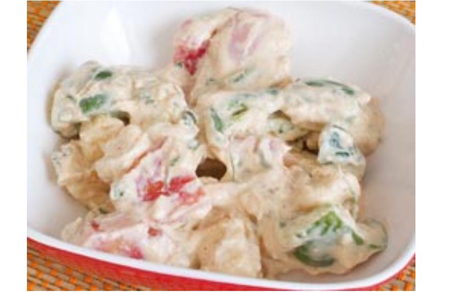 - 1 красный стручковый перец, порезанный так же, как и зеленый;