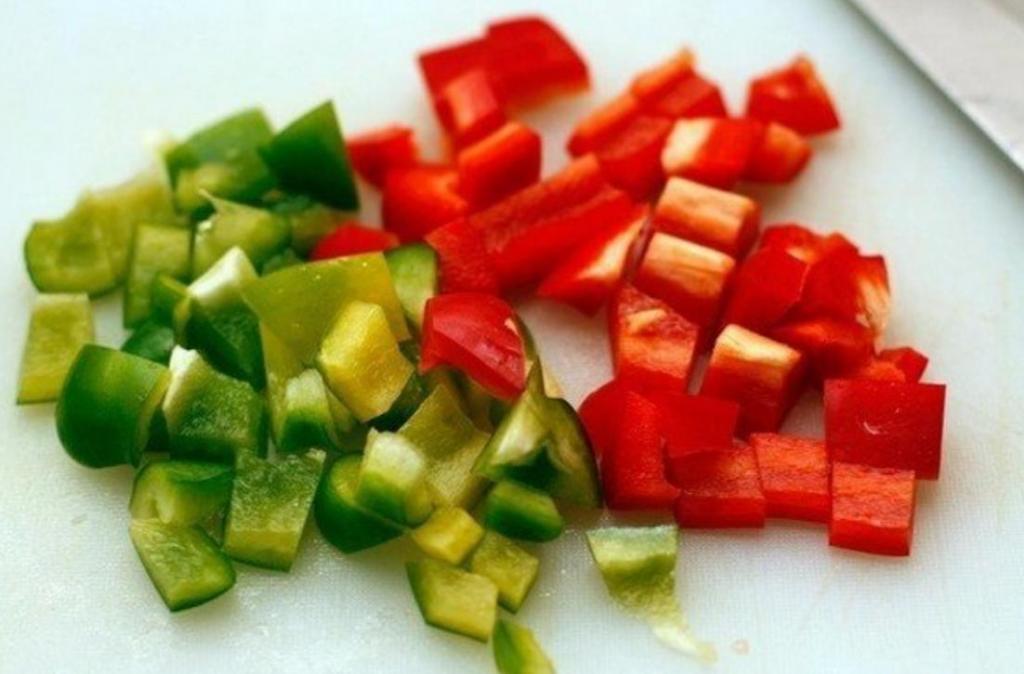- 2 зеленых стручковых перца, нарезанных на крупные квадратики;