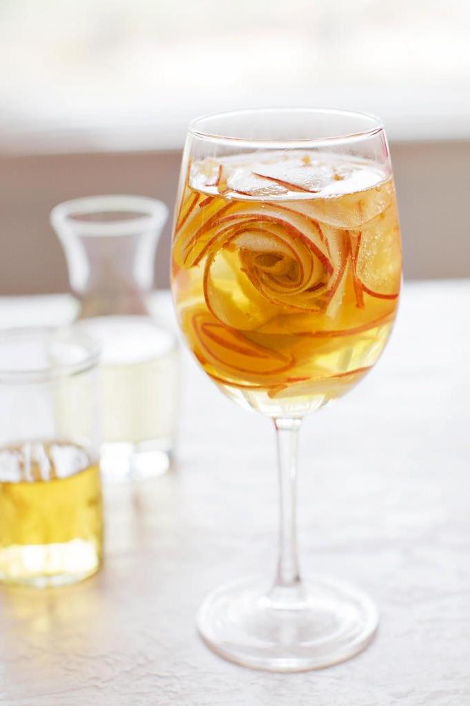 В летнюю жару ничто так не освежает, как свежий шприцель: я готовлю этот коктейль из белого вина и яблок
