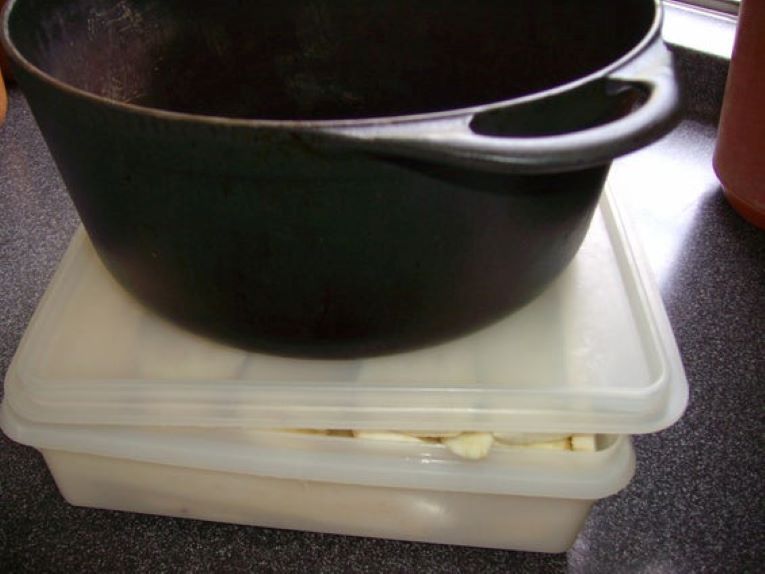 Когда с этим действием будет завершено, накройте овощи фольгой, положите сверху груз и оставьте на ночь. Это нужно для того, чтобы убрать из овощей характерную горечь и лишнюю влагу.