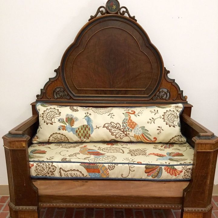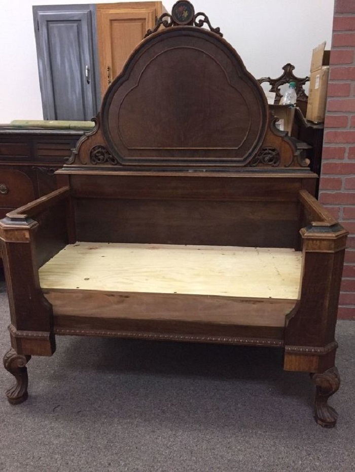 Спасла загнивающие на чердаке детали от стариной кровати: сделала из них винтажный диван