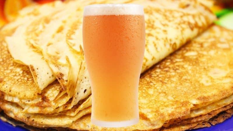 Чтобы блинчики получились красивыми, тонкими и ажурными, я использую всего по стакану: молока, муки и пива. Углекислый газ, который входит в состав напитка, создает на поверхности теста пузырьки. А в процессе жарки из них образуются дырочки. Для блинчиков лучше использовать светлое пиво, покупать «живой» напиток. Главное, чтобы он был свежим.