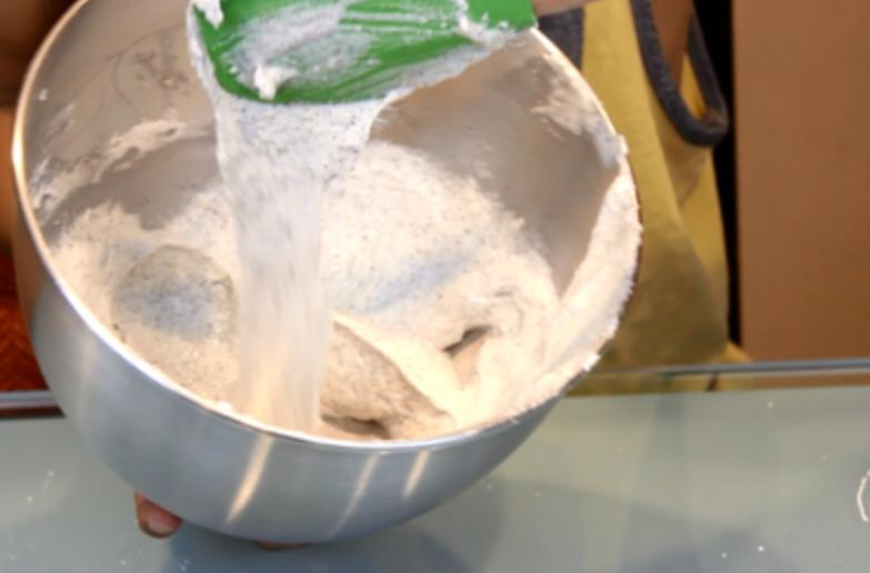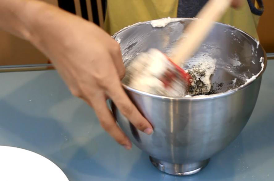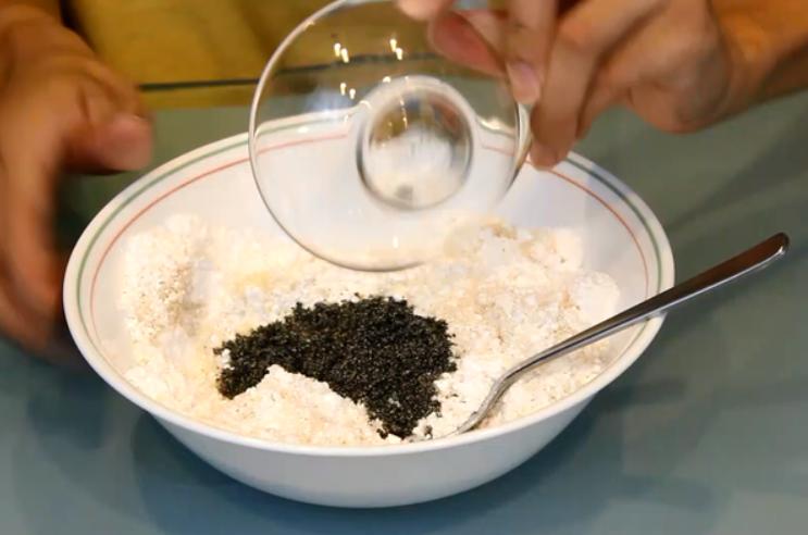 После этого в крем добавляется черный кунжут. Все снова перемешивается до однородности.