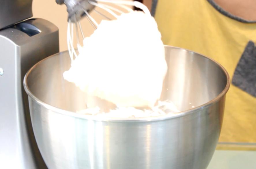 В чаше настольного миксера я соединяю белки яиц, сахар, а затем начинаю взбивать, используя насадку в виде венчика. Миксер я устанавливаю на среднюю скорость. Смесь должна взбиваться до тех пор, пока не образуются жесткие пики. Теперь можно просеять сухие ингредиенты в яичную смесь, удалив все крупные фрагменты. Полученный состав аккуратно перемешивается. Усердствовать слишком сильно не стоит, чтобы белки не опустились.