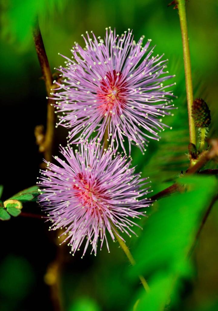 Относится к семейству бобовых. Необычное название получило из-за того, что листочки «стыдливо» сворачиваются в реакции на внешние раздражители. Кроме того, мимоза закрывает свои листья на ночь, чтобы открыть их утром.