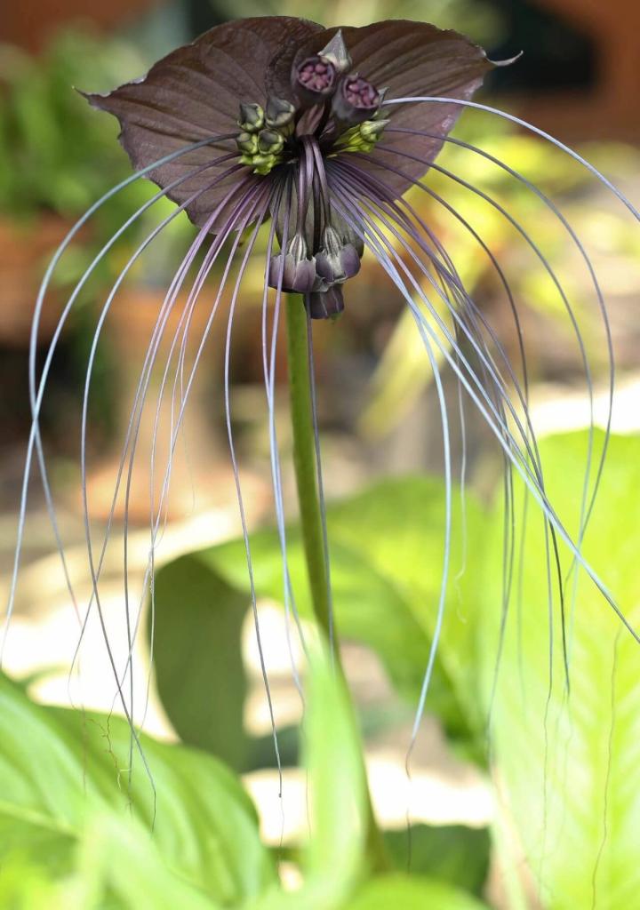 Или цветок "летучая мышь", "кошачьи усики", "цветок дьявола". На своей исторической родине растение стало причиной появления большого количества легенд и суеверий. Может выращиваться в России - на теплых солнечных участках, при регулярном поливе. Имеет способность привлекать насекомых, прежде всего мух, своим специфическим запахом.