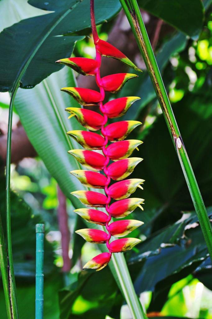 Травянистое растение относится к семейству имбирные. Листья в форме эллипса могут достигать в длину 60 см, цветки ярко-красные, нарядные. Можно выращивать на дачном участке, если обеспечить светлое место, но защитить от прямых солнечных лучей.