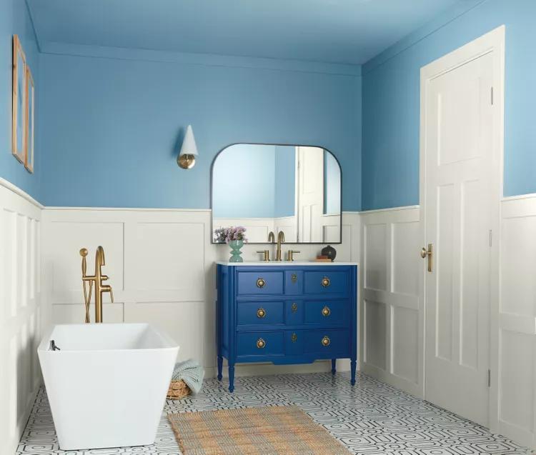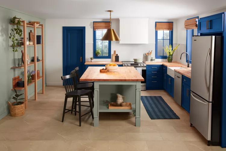 Вы можете тонировать практически любую часть интерьера в этот цвет 2025 года. Encore Blue великолепен и изыскан, когда применяется для напольного покрытия, как показано на фото выше. Кроме того, поскольку это довольно глубокий оттенок, царапины и грязь будет легче скрыть. Смело выбирайте для себя этот цвет и декорируйте свой интерьер в соответствии с последними трендами.