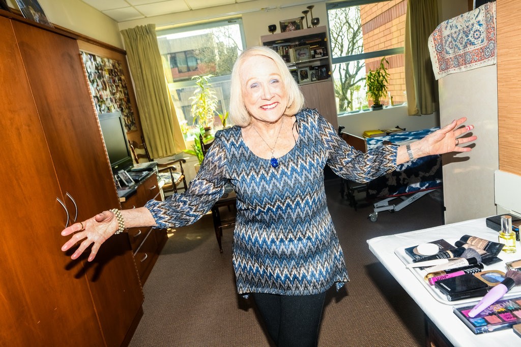 Эта концепция справедлива для Зельды Фасслер (86 лет), поразительно оживленной жительницы Еврейского дома в Ривердейле. Недавно г-жа Фасслер провела посетителя к своему столу для макияжа, который был заставлен мазями и самыми разными косметическими средствами. «Даже когда я иду в столовую, я беру свою расческу, помаду, зеркало и кошелек», - сказала она. «Это моя безопасность».