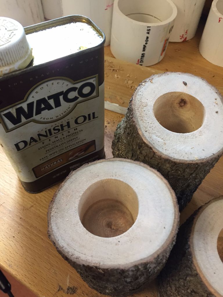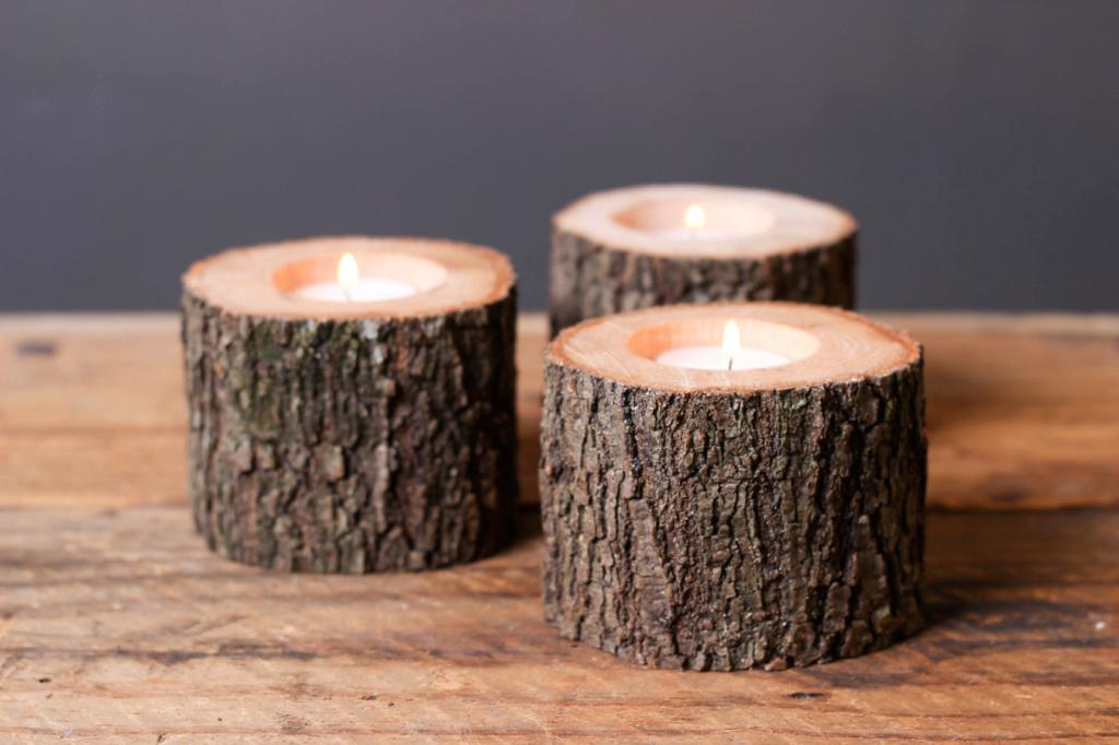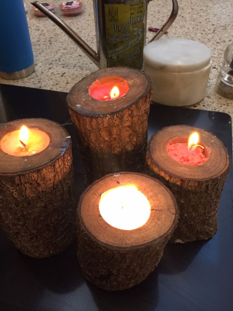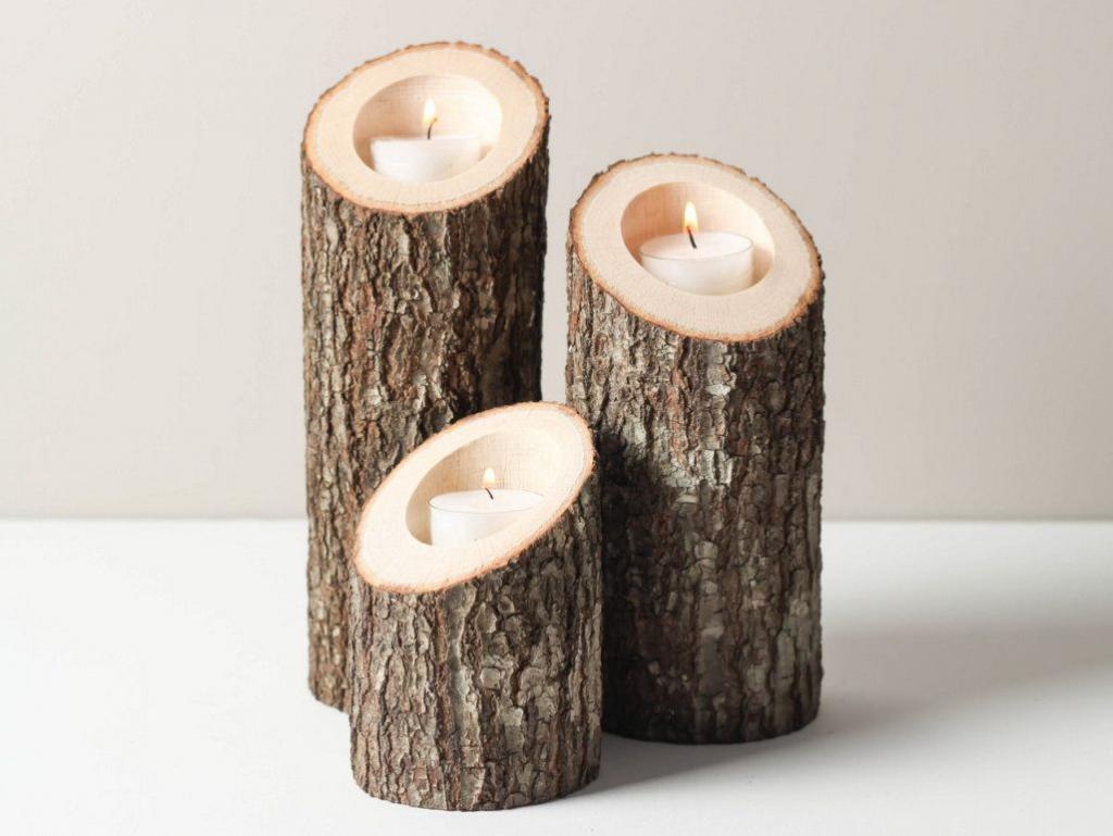 Муж нашел в лесу несколько бревен: недавно он сделал из них простые, но очень красивые подсвечники