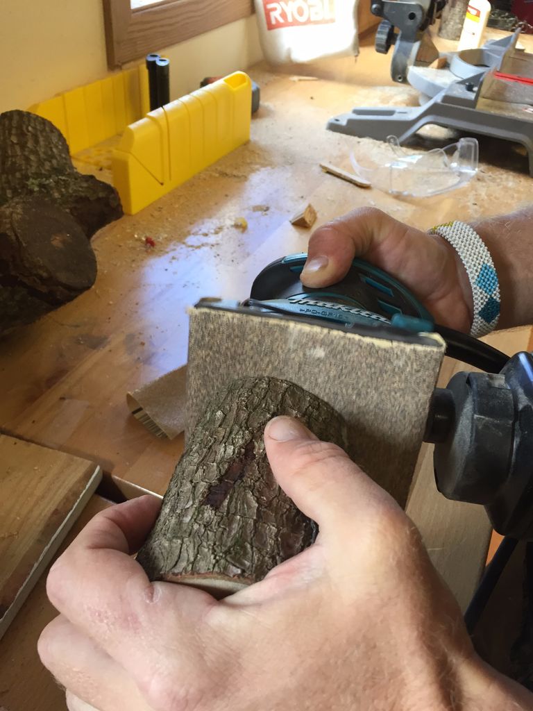 Бревнышко обязательно нужно обработать. Во-первых, в подобранной древесине могут присутствовать личинки насекомых, а во-вторых, использование в качестве подсвечника требует соответствующей обработки.