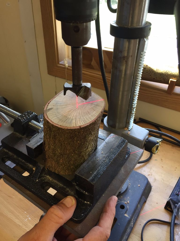 Перед тем как приступить к сверлению отверстия, необходимо прочно закрепить бревно в тисках. При использовании насадки глубину сверления можно контролировать, нанеся на нее яркую разметку. Конечно же, при работе необходимо защитить глаза, надев очки. Ведь опилки и древесная пыль полетят во все стороны.