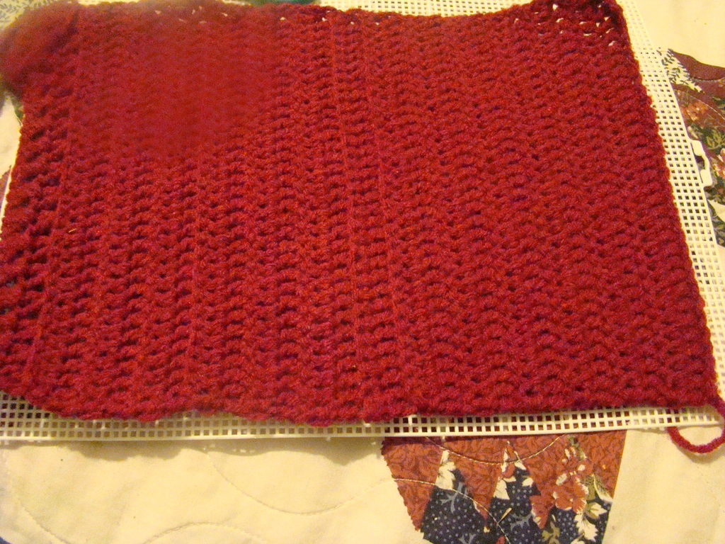 Подберите все 3 стороны. Один из длинных краев корпуса заканчивается посередине до 20 стежков, затем поднимается с того места, на котором остановился, и заканчивает оставшуюся часть последней стороны. Это создает уникальный, ромбовидный рисунок.