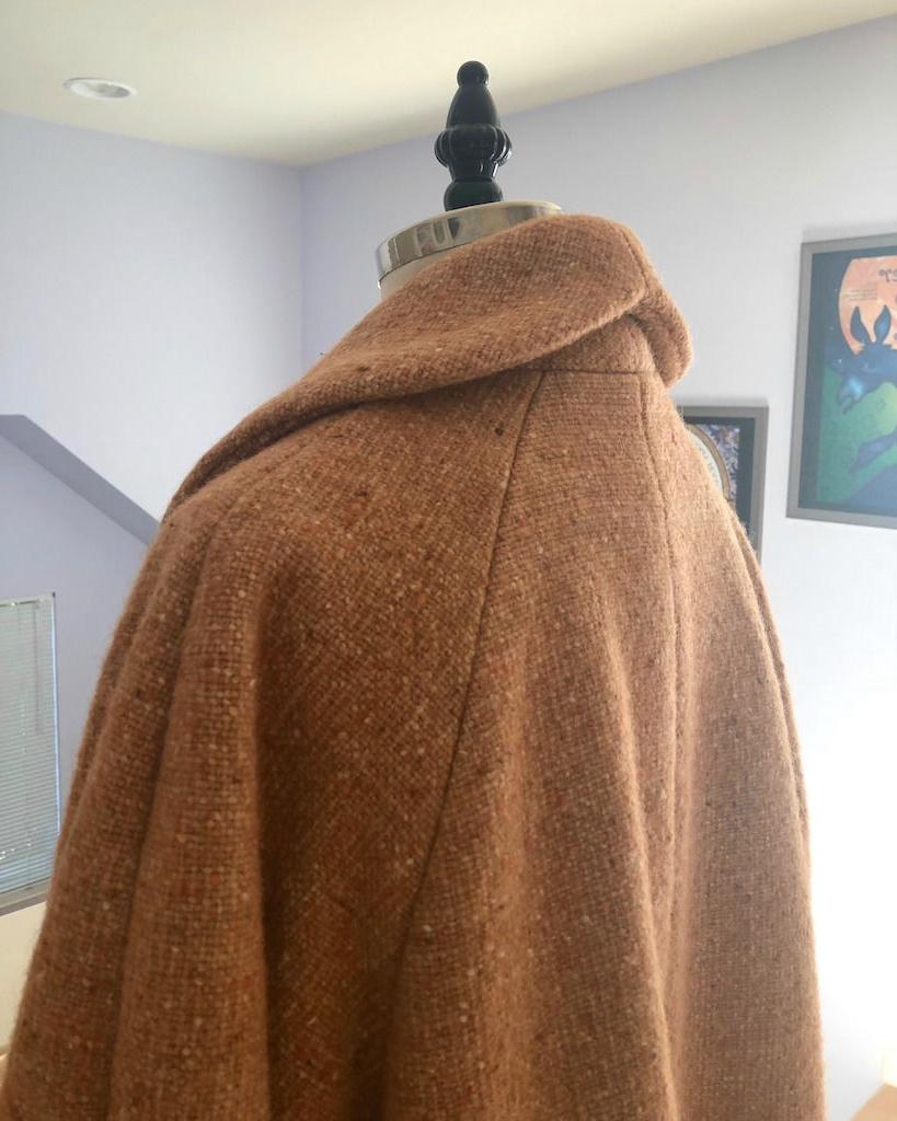Свободная петля также может удерживать части одежды вместе. Для этого отвороты воротника пальто сшиты вместе изнутри, чтобы удержать внешнюю оболочку и подкладку в этом месте. Это также помогает держать воротник в таком положении, которое вы хотите видеть всегда. Остальная часть вещи свисает с плеч, но с такой тяжелой шерстью без этой связи внешняя оболочка будет тянуть вниз и отделяться от подкладки.