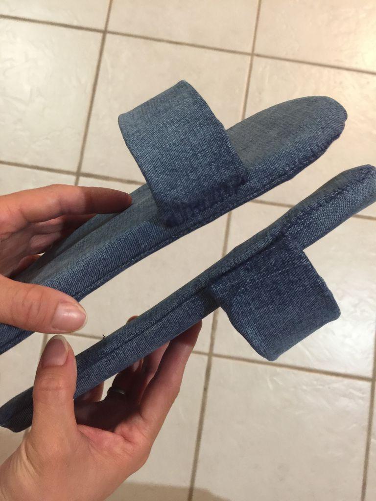 Из старых джинсов можно сделать уйму полезных вещей: например, сшить красивые домашние тапочки