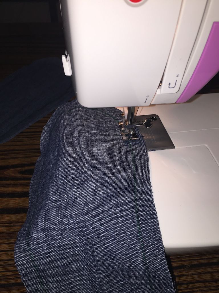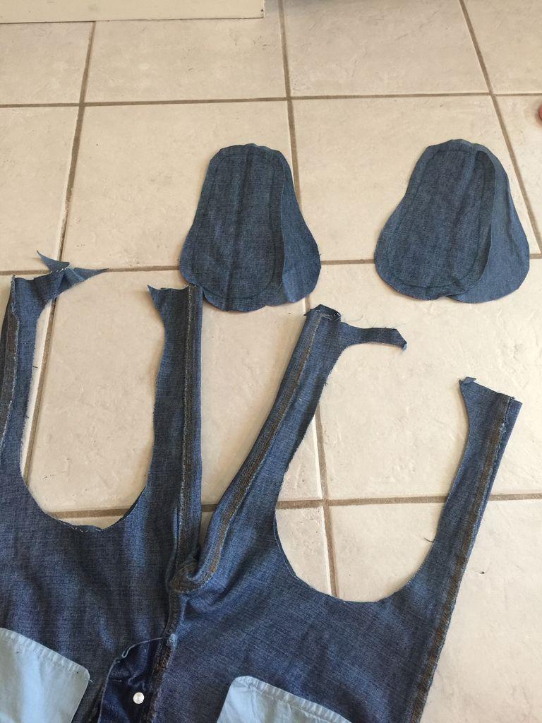 Сначала нужно взять сшитую джинсовую основу и вывернуть ее наизнанку. Таким образом, швы и следы маркера не будут видны, а изделие приобретет аккуратный почти готовый вид.