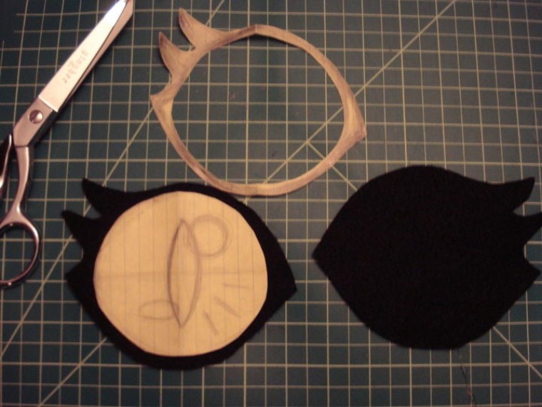 Далее куску ткани необходимо придать несколько продолговатую форму, чтобы он напоминал рот кошки.