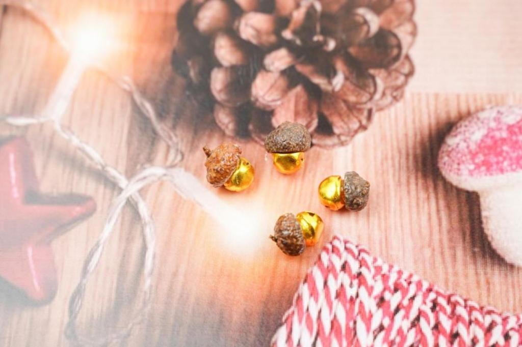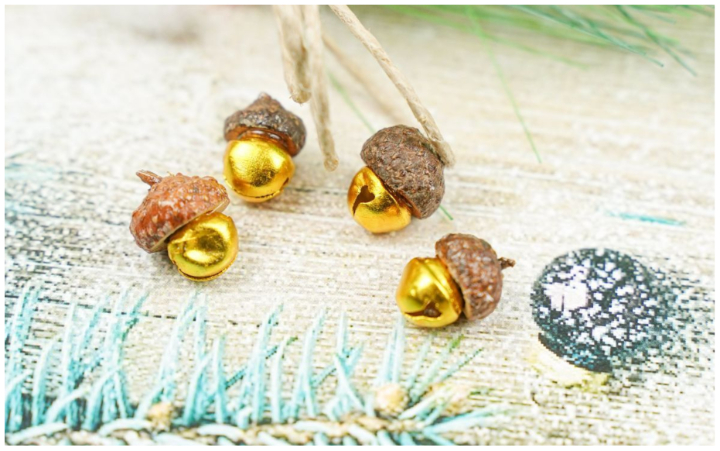 Колокольчики, красиво оформленные, издают приятный мягкий звук и также радуют глаз, доставляя эстетическое удовольствие. Рассмотрим вариант поделки с использованием желудей для создания эффектного украшения, которое можно использовать и в качестве новогоднего декора, и также для оформления подарков для близких.