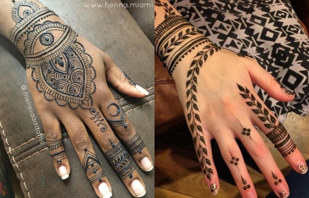 Узор «Глаз» в восточных странах ранее считался чем-то вроде оберега. Для защиты его можно нанести и сегодня. Виноградные листья и ветки других растений с листьями считались символом преданности и большой силы.