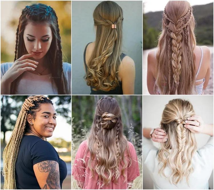 Очень стильно и привлекательно смотрятся укладки с полураспущенными волосами, на которых в качестве элементов присутствуют косички. С ними также можно экспериментировать, выбрать нужное количество, ширину, длину, форму и пр.