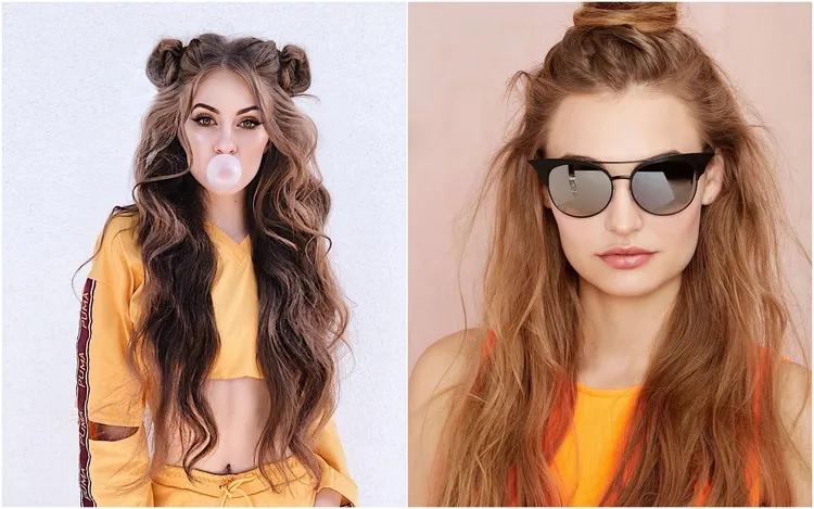 На волосах любой длины можно оформить 2 пучка по бокам или один посередине. Такие прически сегодня в тренде, и они идеально подходят для полураспущенных волос. Можно также сделать петли или косички, выбирайте любые понравившиеся вам варианты.