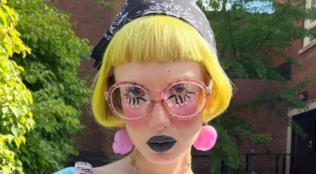 Блогер Сара Кампосарконе в интернет-пространстве известна своими экстравагантными, а порой даже фриковыми образами. Если вам тоже по душе эпатаж, то вы можете сделать эффектный макияж с использованием декора. Нарисуйте с помощью черной подводки вертикальные линии, исходящие из нижнего века. Это будет имитация ресниц для создания драматического лука. В конце каждой линии наклейте по стразинке (жемчужного перламутрового оттенка). Если нарисуете коричневым карандашом веснушки, то образ получится еще более забавным.