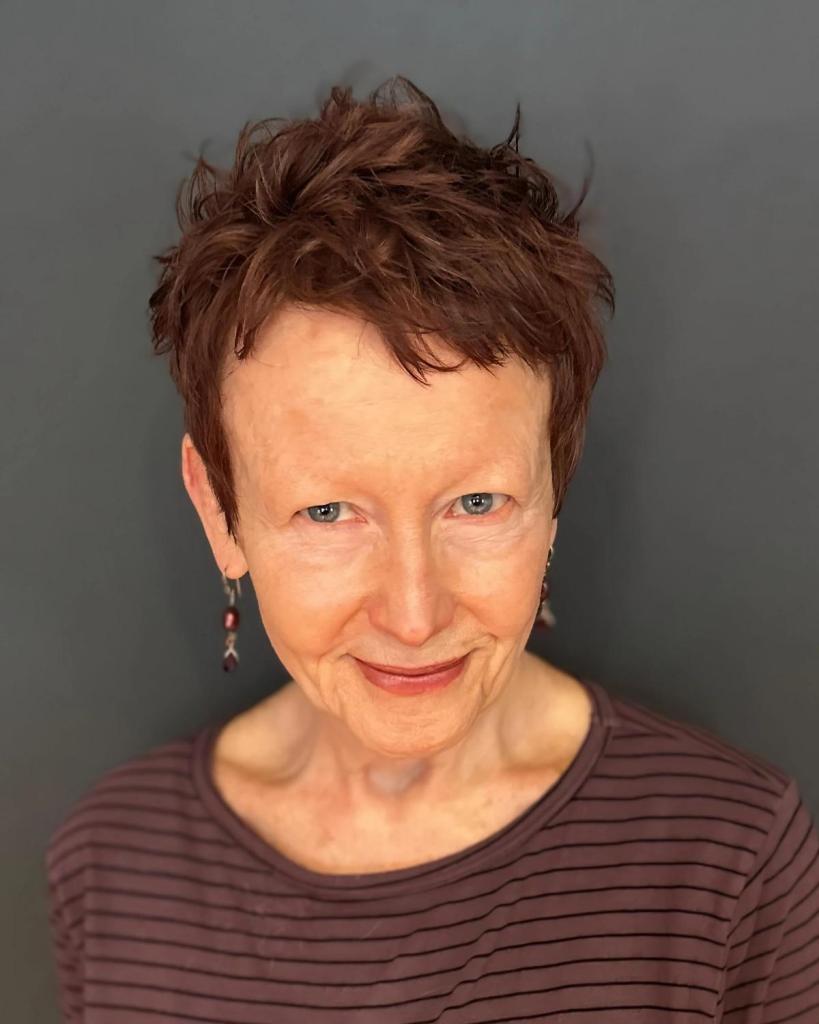 Пикси отлично подходит для зрелых женщин, так как она оказывает омолаживающий эффект. Пикси помогает придать дополнительную текстуру тонким волосам без надобности тратить слишком много времени на укладку.
