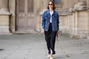 Выберите наряд со свободной юбкой-миди или с классической кожаной юбкой и наденьте сверху джинсовую рубашку с джемпером, чтобы создать непринужденный аутфит.