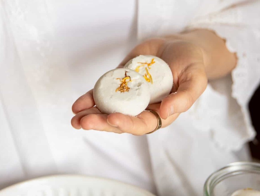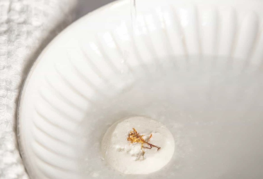 Опустите кружок в миску с горячей водой. Когда кокосовое масло растает, начнется шипение, как у бомбочки для ванны.