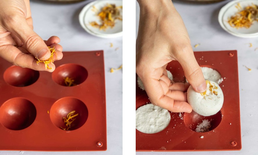 Когда кружочки, сформированные из смеси, полностью высохнут, осторожно достаньте их из силиконовых формочек и оставьте на ночь при комнатной температуре.